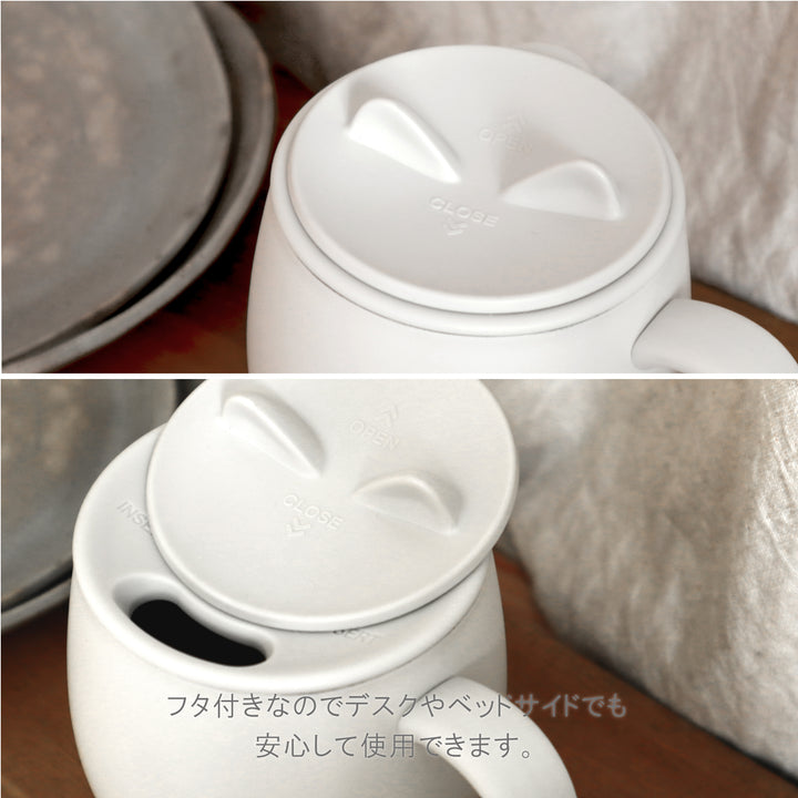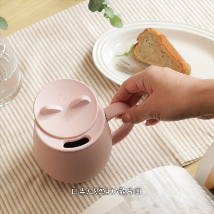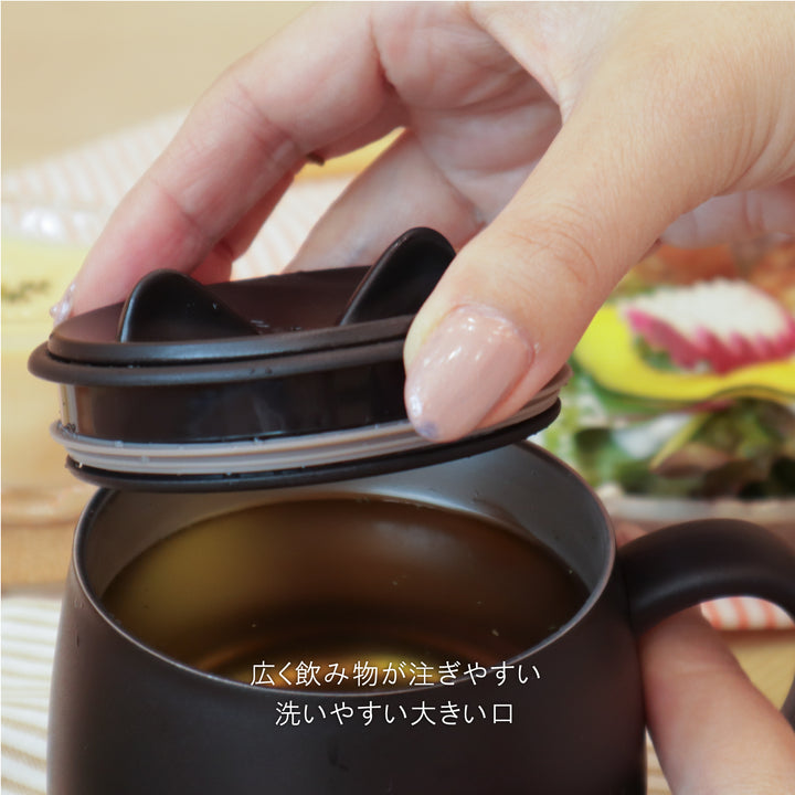 The mug has cat ears that open when you press them, making even opening and closing it a soothing experience. It has a double-walled vacuum structure that provides excellent insulation for hot and cold drinks.